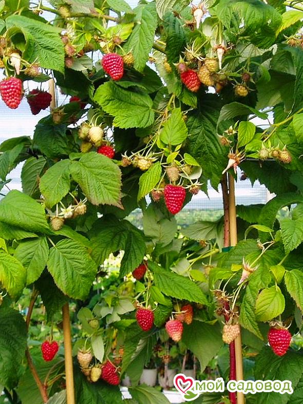 Описание сорта: Штамбовые сорта отличаются от обычной малины жёсткими и утолщёнными побегами, напоминающими древесину. Ветви располагаются на небольшом расстоянии одна от другой, благодаря чему растение напоминает крону дерева. Малина — любимица многих садоводов, поскольку ежегодно угощает вкусными и полезными ягодами. Мякоть сочная. Семена мелкие. Вкус ягод кисло-сладкий. По дегустационной шкале оценивается в 4 балла из 5. Стебли прямые, достигают 1,5–2 м. На этапе цветения они имеют зелёный окрас, а на стадии покоя приобретают коричневый цвет. Каждая ветка образует 2–3 ветвления, на ней формируется около 20 ягод. На ветках почти нет шипов. Отличительной чертой сорта являются темно-зелёные листья с гофрированной пластиной. Растение хорошо переносит морозы.
